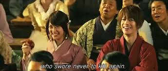 Uma cena interessante, que acontece logo no início do filme, ocorre quando Kaoru e Kenshin estão assistindo uma peça teatral que representa uma luta do Battousai. As cenas são cômicas, e os dois dão muitas risadas.